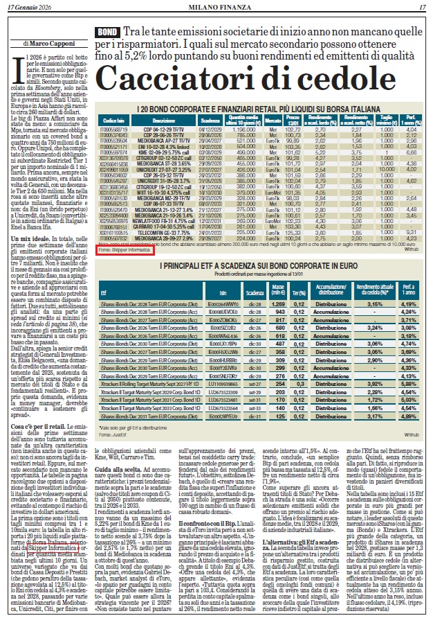 Obbligazioni Corporate e Bancarie più trattate